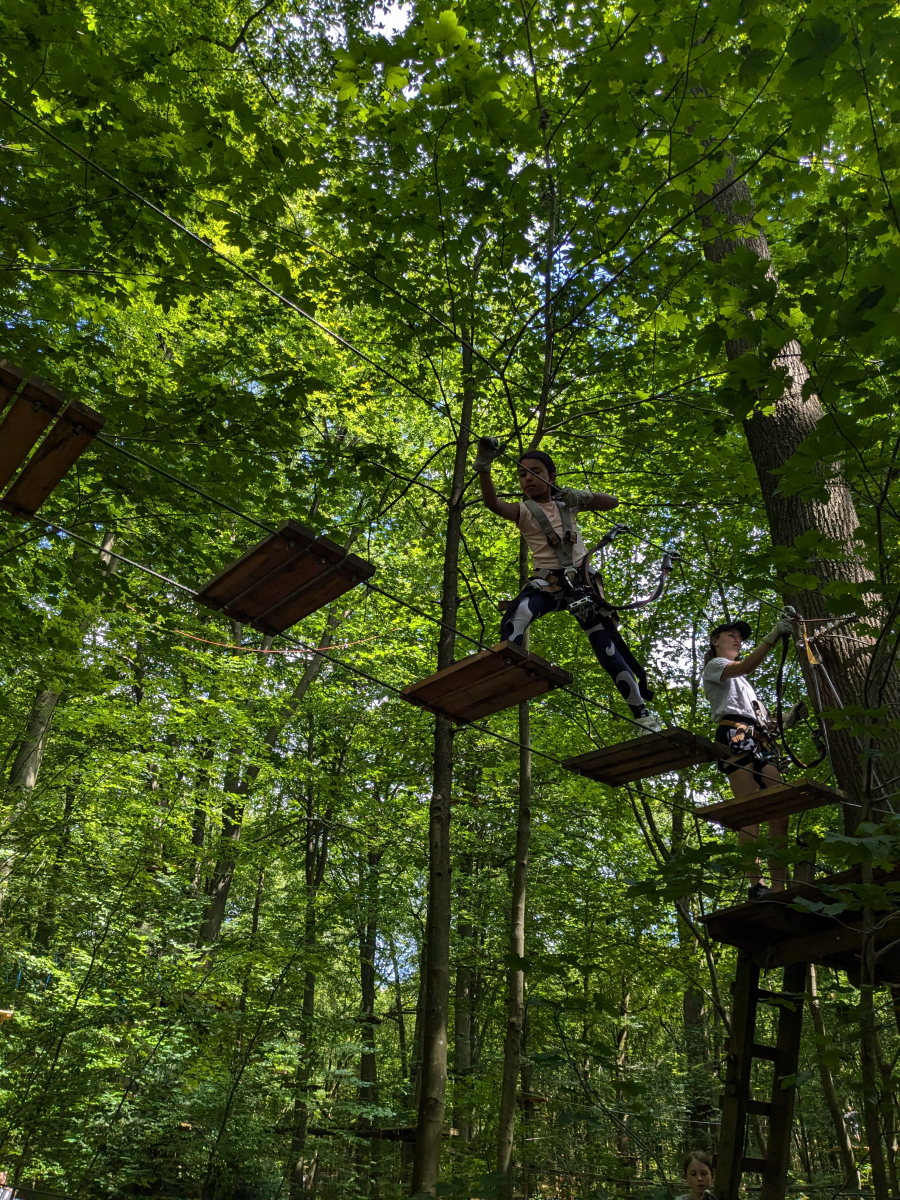 Am 23.06.24 trafen wir uns Sonntag Morgens im Kletterwald in Aachen. Mit 24 Kindern und 6 Betreuern, waren wir eine ganz schön große Truppe dort und nach einer kleinen Einführung konnten alle mit dem Klettern starten. Alle Kinder unter 11 Jahren mussten zusammen mit einem Betreuer klettern, so dass wir viele kleinere Gruppen hatten, die zusammen durch die Bäume kraxelten. Einige mussten ihre Höhenangst überwinden, andere konnten ihre ganze Energie beim Klettern rauslassen 🙂